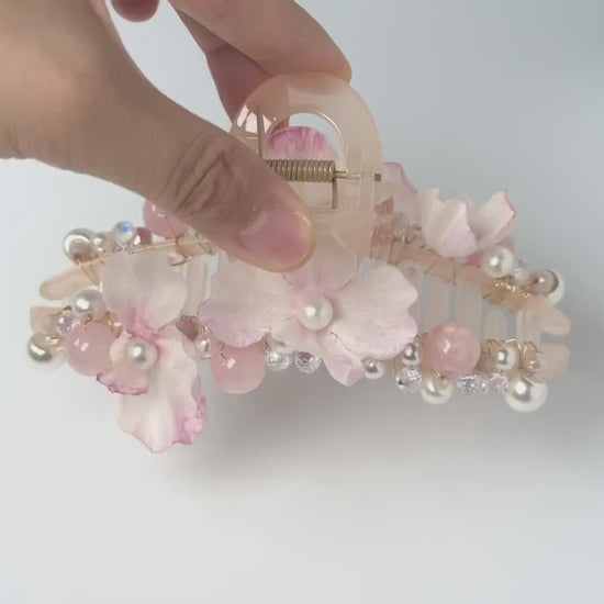Hello! I'm Pepper. Thank you so much for visiting my little handmade shop! I incorporated pink beads to capture the essence of cherry blossoms and added sparkling rhinestones and pearls to enhance the brightness of the hair clip. My goal was to recreate the magical feeling of viewing cherry blossoms in Japan, hoping this piece brings you that same experience.