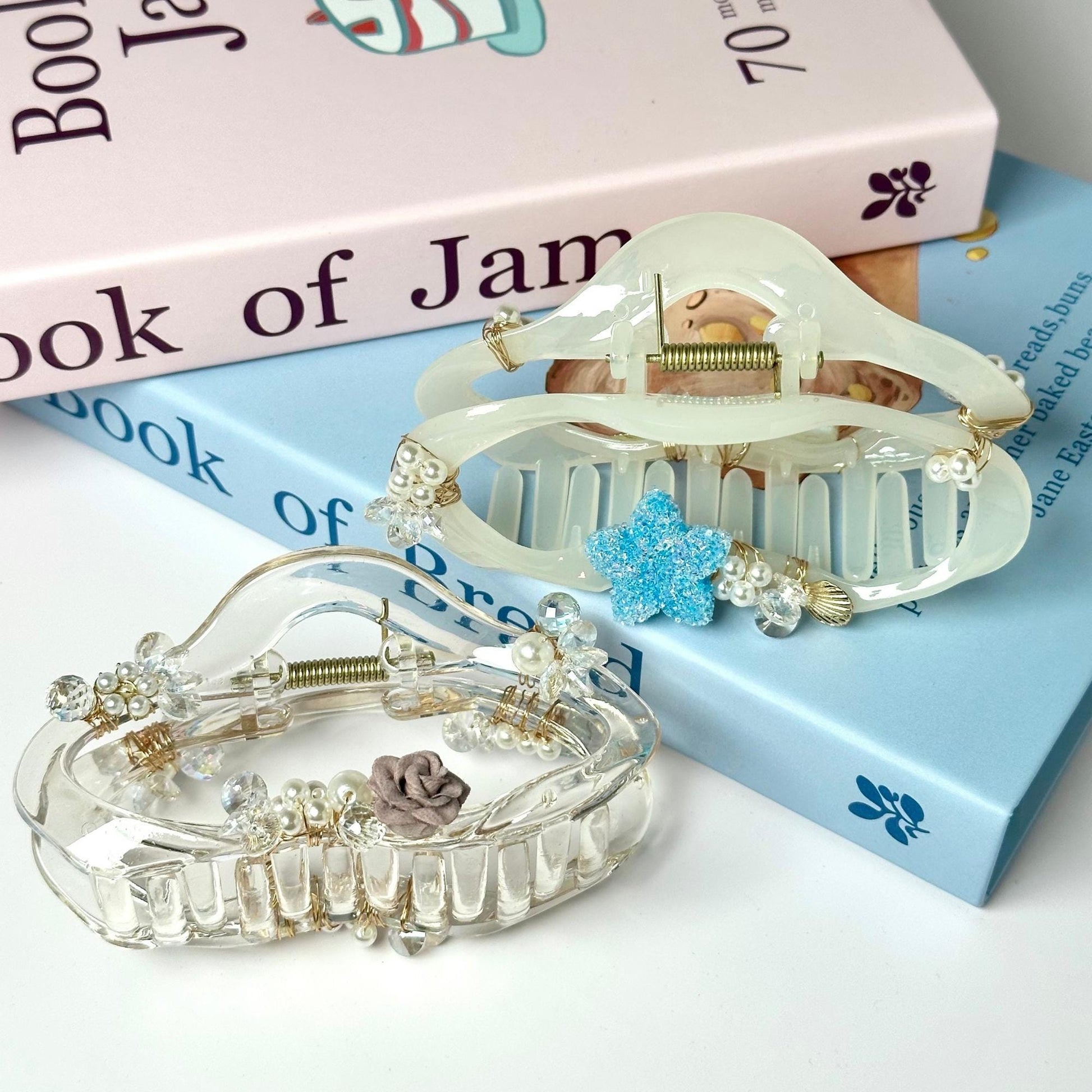 Meet my Starfish & Rose Hair Claws! The Starfish brings a bit of ocean sparkle, while the Rose adds a soft, romantic charm. Pick your favorite and let your hair shine!