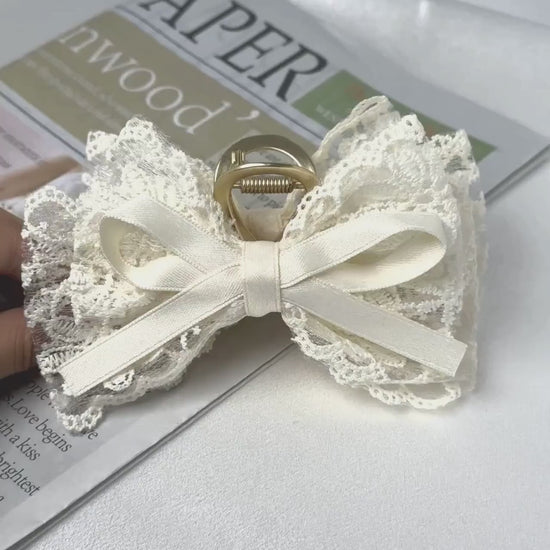 Hello! I'm Pepper. Thank you so much for visiting my little handmade shop! When I designed this hair claw, I wanted to capture that feeling of classic elegance with a personal twist. The delicate lace reminds me of treasured heirlooms, while the bold metal base adds a modern touch—something strong yet beautiful. The soft bow ties it all together, making it feel romantic and timeless. My hope is that when you wear this, it feels like a little piece of history mixed with your own style, adding grace to even your simplest days.